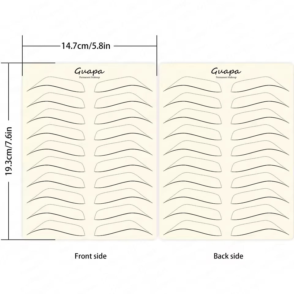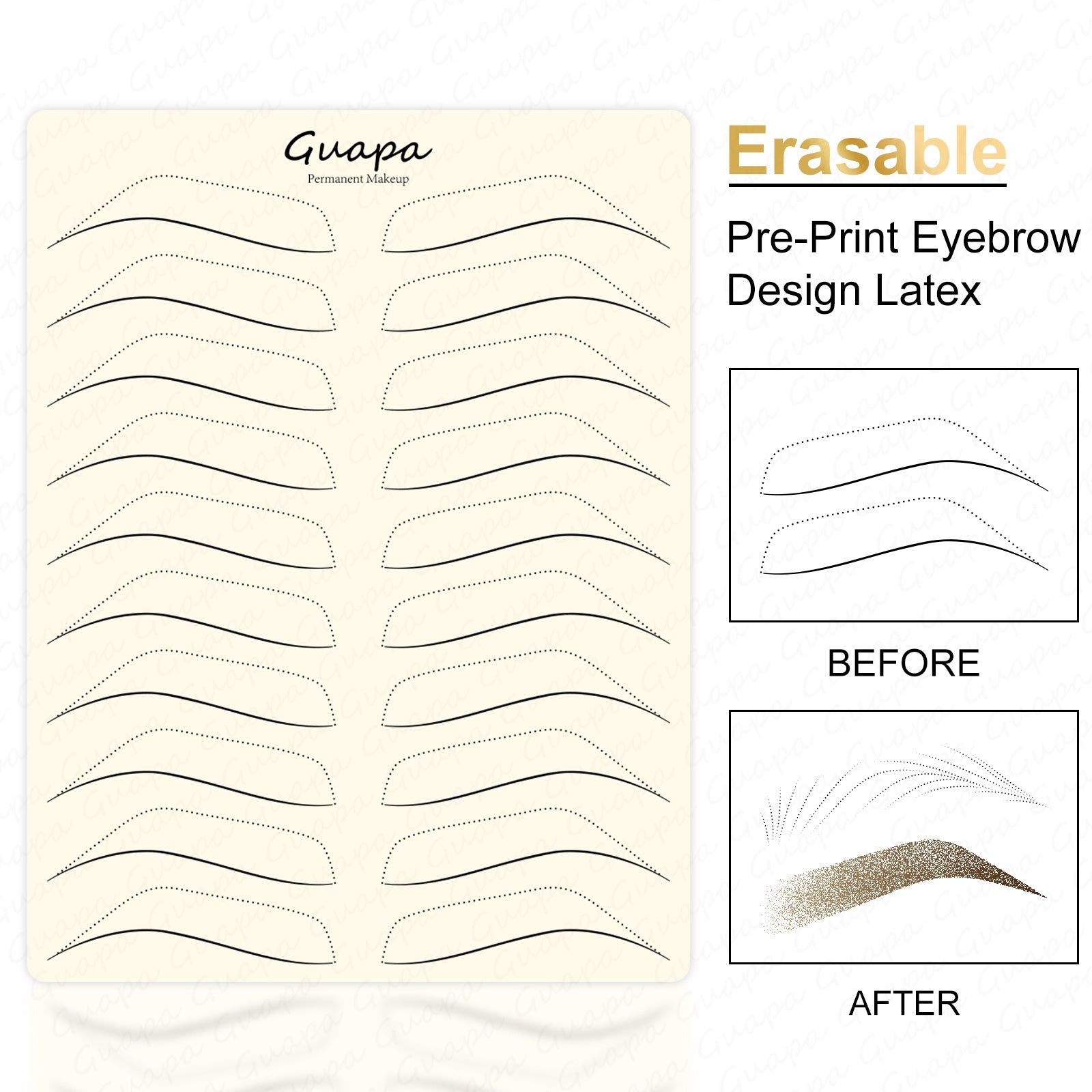 Guapa's Erasable Pre-Print Nano Eyebrow PMU Silicone Practice Skins are made of biodegradable rubber with a 1mm thickness, offering durability and simulation of real human skin. The double-sided pre-printed brow designs allow for multiple practice sessions, while the erasable feature enables repeated use with cotton swabs and makeup oil. Suitable for various permanent makeup techniques like NanoHairstroke and Ombre, it ensures easy pigment absorption and realistic practice for skill improvement.